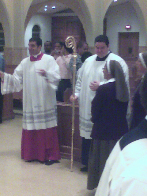 Sometime during the second reading, the power went out and we had to adjust rather quickly. It was decided to cut out the “bells” (my job) during the singing of the Gloria because it may drown out the singing if the microphones and organ have no power. Aside, Javier predicted the power would come back when I ran the bells. I laughed it off until the power actually DID come back during the singing of the Gloria … so … the lights would have come back during the ringing of the bells! … A wise seminarian reflected on the event after Mass and concluded it was a sign to remind us that “God is in charge of the special effects.” — Amen! 🙂