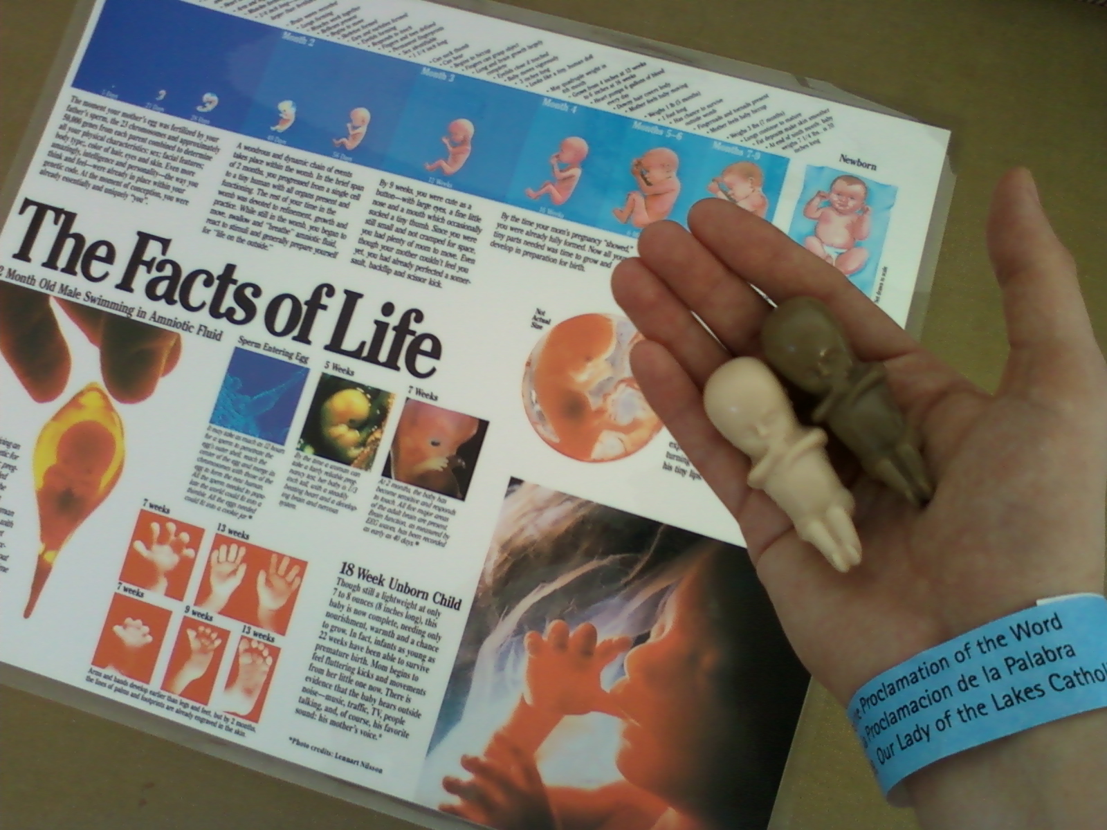 At lunchtime, we could browse the various displays of resources from various Catholic companies. Respect Life was well represented as well with lots of resources for all ages. I especially like the poster of “The Facts of Life” and the hand-held figurines of a 3 month old in the womb.