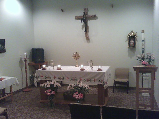 I also took a picture a few days ago of one of our seminary adoration chapels on campus here at St John Vianney College Seminary. It’s located upstairs at the end of the hall of the seminary dormitory. — a great place to spend time with the Lord