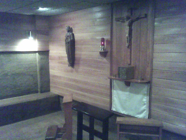 After a long evening walk with some seminarian brothers, we stopped at St Brendan’s Catholic Church adoration chapel since it’s next door to the seminary grounds. Actually, last September 2007, this adoration chapel was the site of an alleged sillouette of the Holy Family on a white tapistry. The sillouette was cast by a shadow from a candle. The alleged event lasted a few day and even made it in the local Miami Herald. — this is my first time in the beautiful chapel myself.