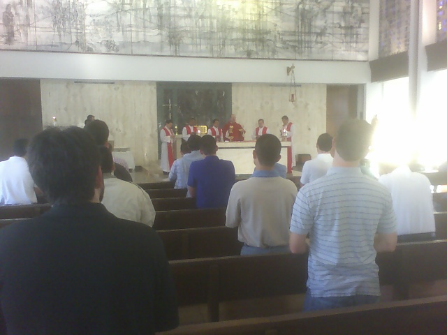 Tonight ends a 2 week pilgrimage in the Archdiocese of Miami of a monstrance blessed by Pope John Paul II to encourage vocations, especially in this Golden Jubilee year. Today at 8pm, here at St John Vianney College Seminary, we had a full chapel of visitor for Compline (Night Prayer) with benediction & adoration with the visiting vocation monstrance. Auxiliary Bishop Noonan had a good reflection and I was lector (a bit pro-active) for a great experience.