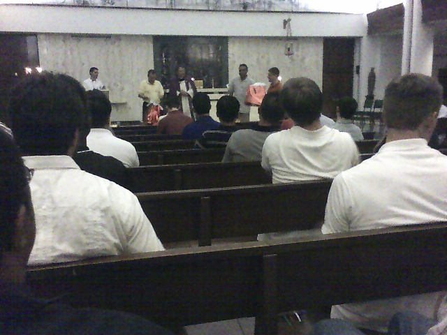 GAUDEAMUS — There’s a tradition at the seminary, called Gaudeamus, where a skit is performed to make fun of seminarians. At the end of the first semester, all new guys are highlighted. At the end of the second semester, seniors are highlighted. Since I’m a “new guy,” over the last week, guys are asking what I think they “have on me.” I have no idea — hopefully nothing that will haunt me throughout seminary. After dinner at 9:30pm, we all gather in the Community Room for the “show.” Just when I think I’m safe, the FIRST guy that comes out is “ME” — making fun of me taking fruit (if that’s all the got, I dodged that bullet!). The whole skit was hillarious with great impressions, including the Rector Fr Michael, Fr Santos, Fr Vallee, & Bishop Noonan.