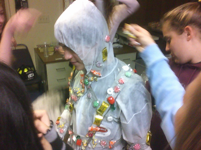 Today is day #2 of my parish Confirmation Retreat (it started last night) for the 8th grades of St Bernadette (both School & CCD). Since most of the CCD kids were my students last year, I assisted with a few minor things. The theme of the Holy Spirit was implimented with the popular LifeTeen format called “Fire & Ice” that is supposed to be a 3-day retreat, but it was a adapted to 2 long evening sessions. Simply … it was awesome! The parish hall was used for most activities with awesome decorations themed FIRE & ICE. Most of the talks were done by former high school confirmandi of the parish. The small group discussion were facilitated by peer ministers from local Archbishop McCarthy High School and the activites were a lot of fun (especially the “Human Pinata“).